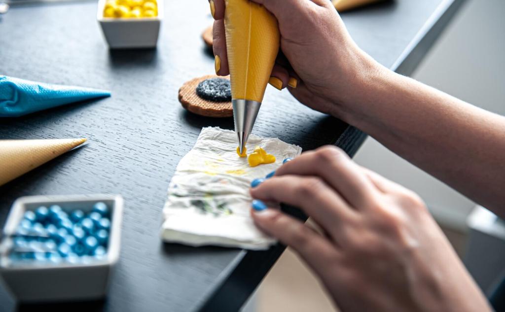 Ein wasserlöslicher Stift, Transferpapier oder ein Lichttisch helfen, Entwürfe präzise zu übertragen. Zeichne locker, markiere wichtige Schattenzonen und plane Leerräume für Ruhe. Verfolge deine Fortschritte in einem Skizzenbuch und poste Vorher-nachher-Fotos für unsere Monatsgalerie.